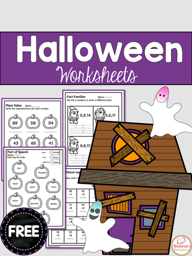 K-4th Grade Fun & Free Printable Halloween Math Worksheets The Halloween Math Worksheets Set Includes There are 4 sets of math Halloween festivities waiting for young learners and each of these free printables sets has 5 pages. If I do my math correctly {giggle} that is 20 pages of fun Halloween theme math literacy skills. 1 page with simple equations like addition facts.